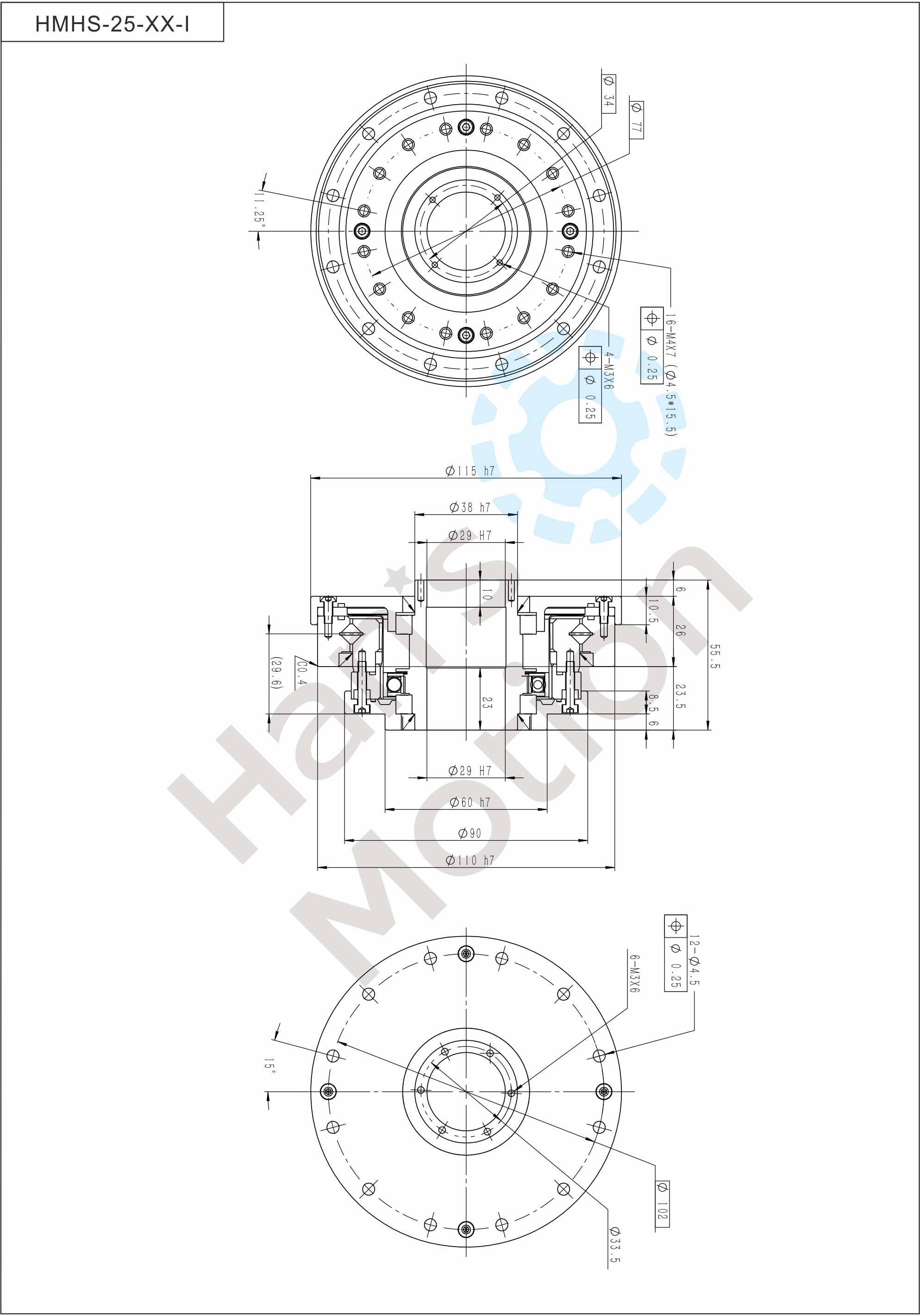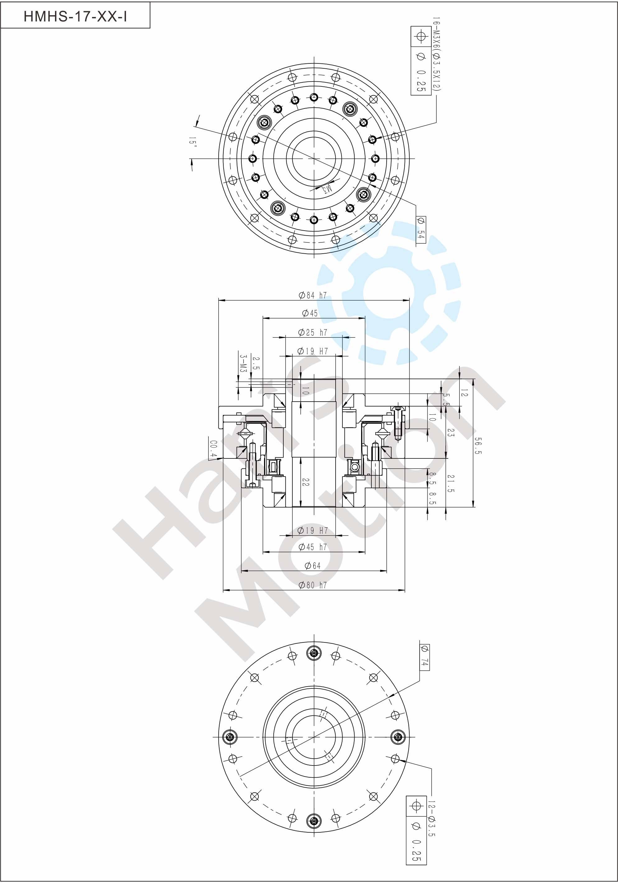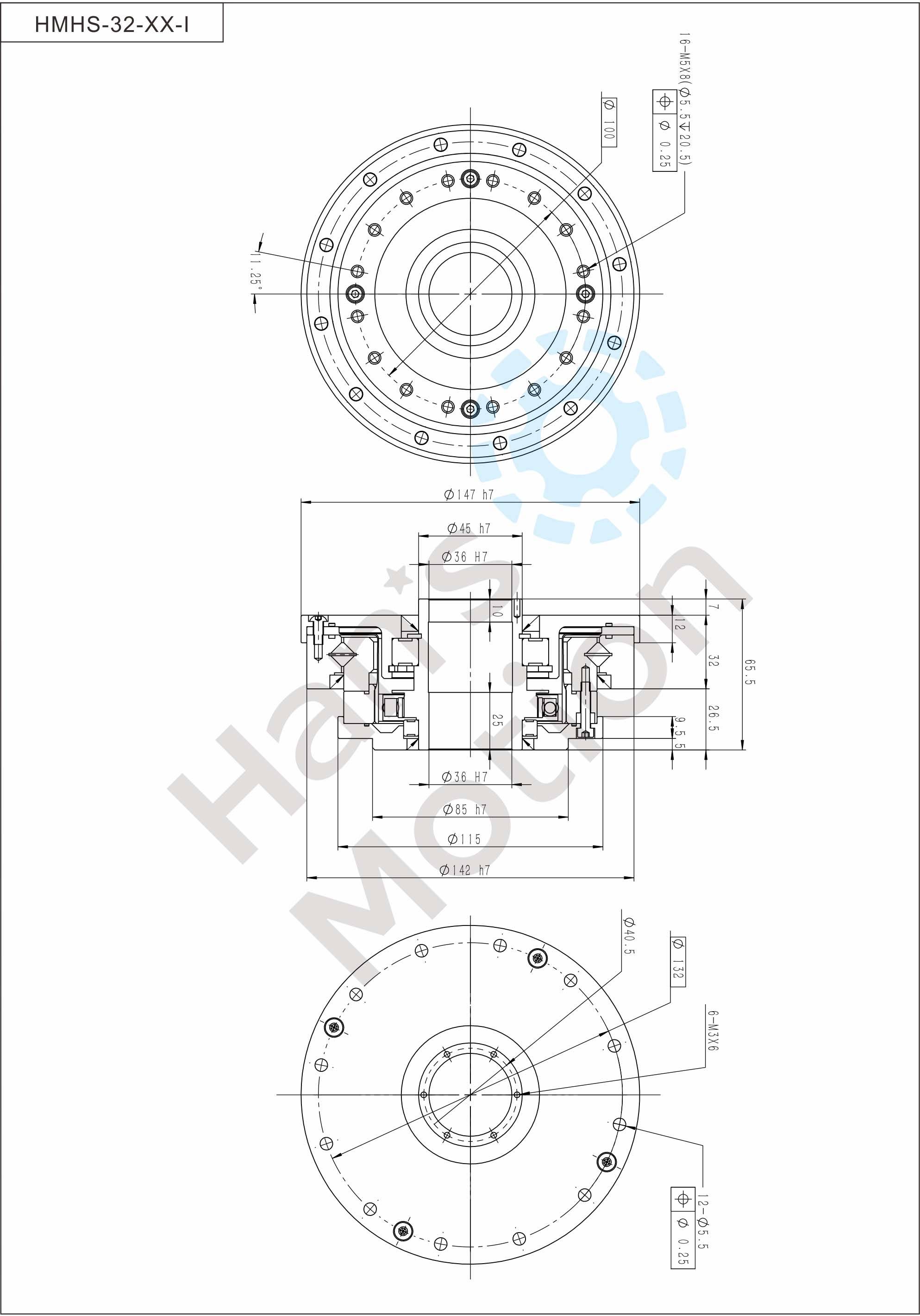 HMHG-I series flexible gear belongs to hollow flanging standard structure and there are large-caliber hollow shaft hole in the middle of wave generator cam. And suppor t bearing is also designed inside the reducer. The reducer is fully sealed easy to install,especially suitable for the situation where there is a need to thread through the reducer center.