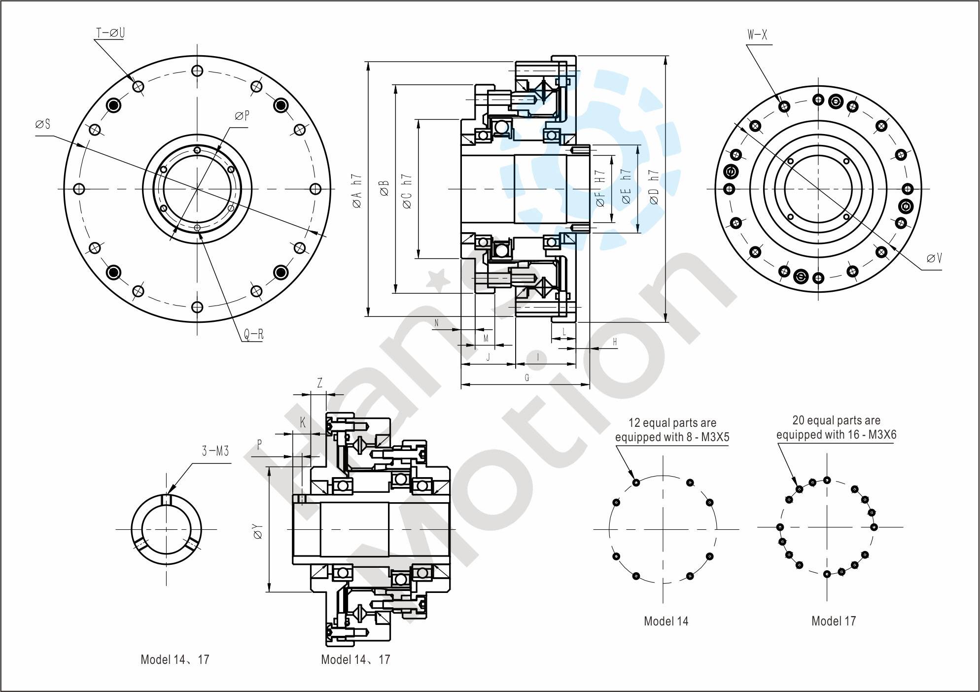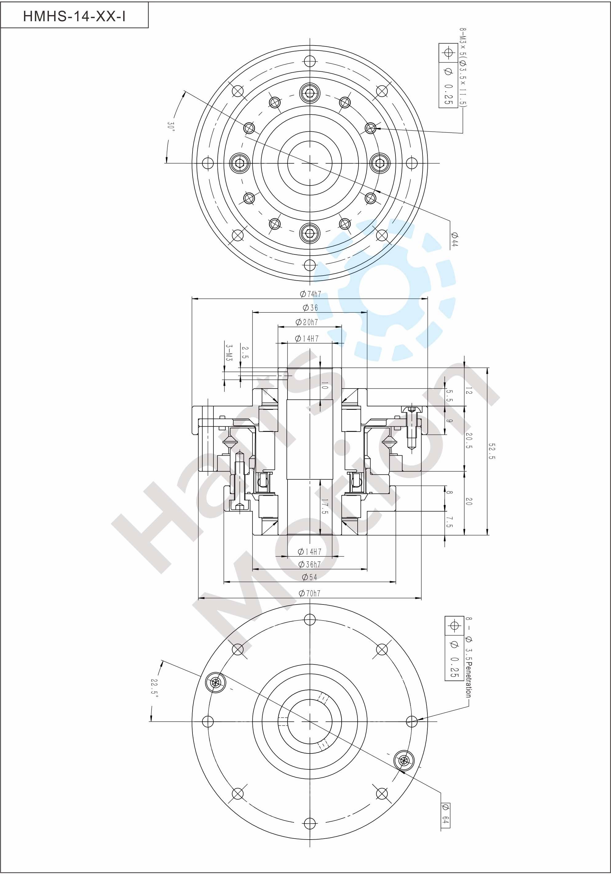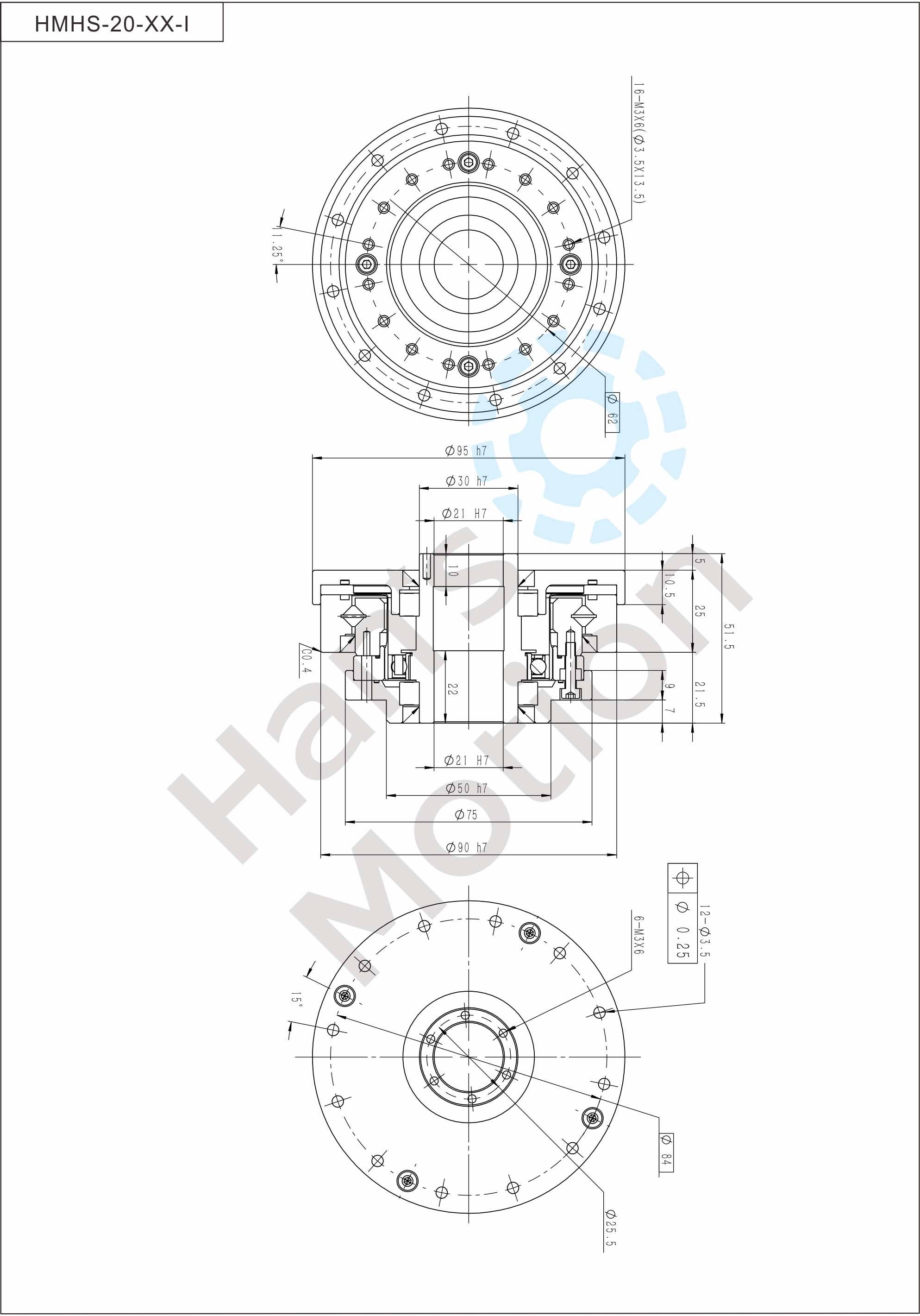 HMHG-I series flexible gear belongs to hollow flanging standard structure and there are large-caliber hollow shaft hole in the middle of wave generator cam. And suppor t bearing is also designed inside the reducer. The reducer is fully sealed easy to install,especially suitable for the situation where there is a need to thread through the reducer center.
