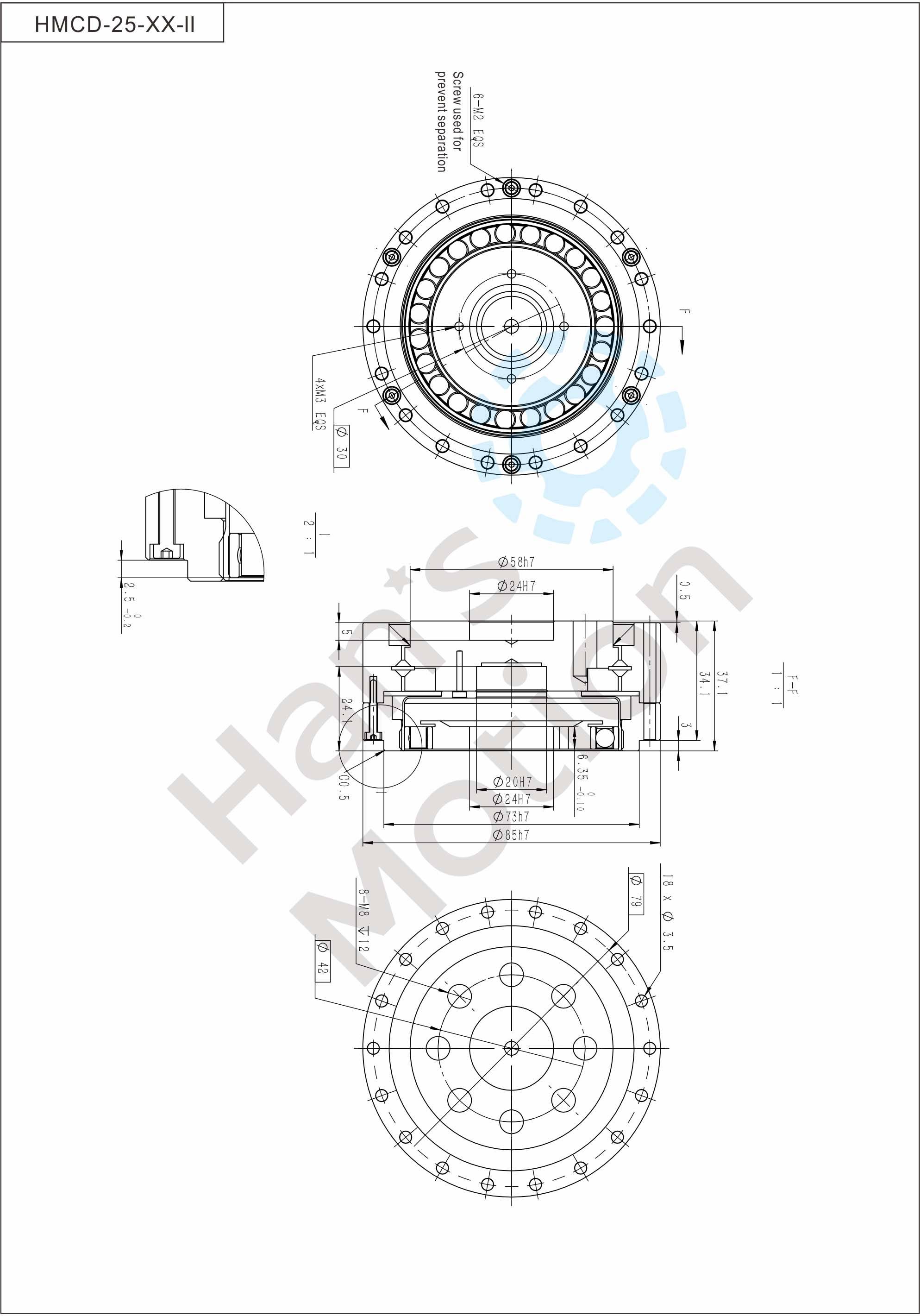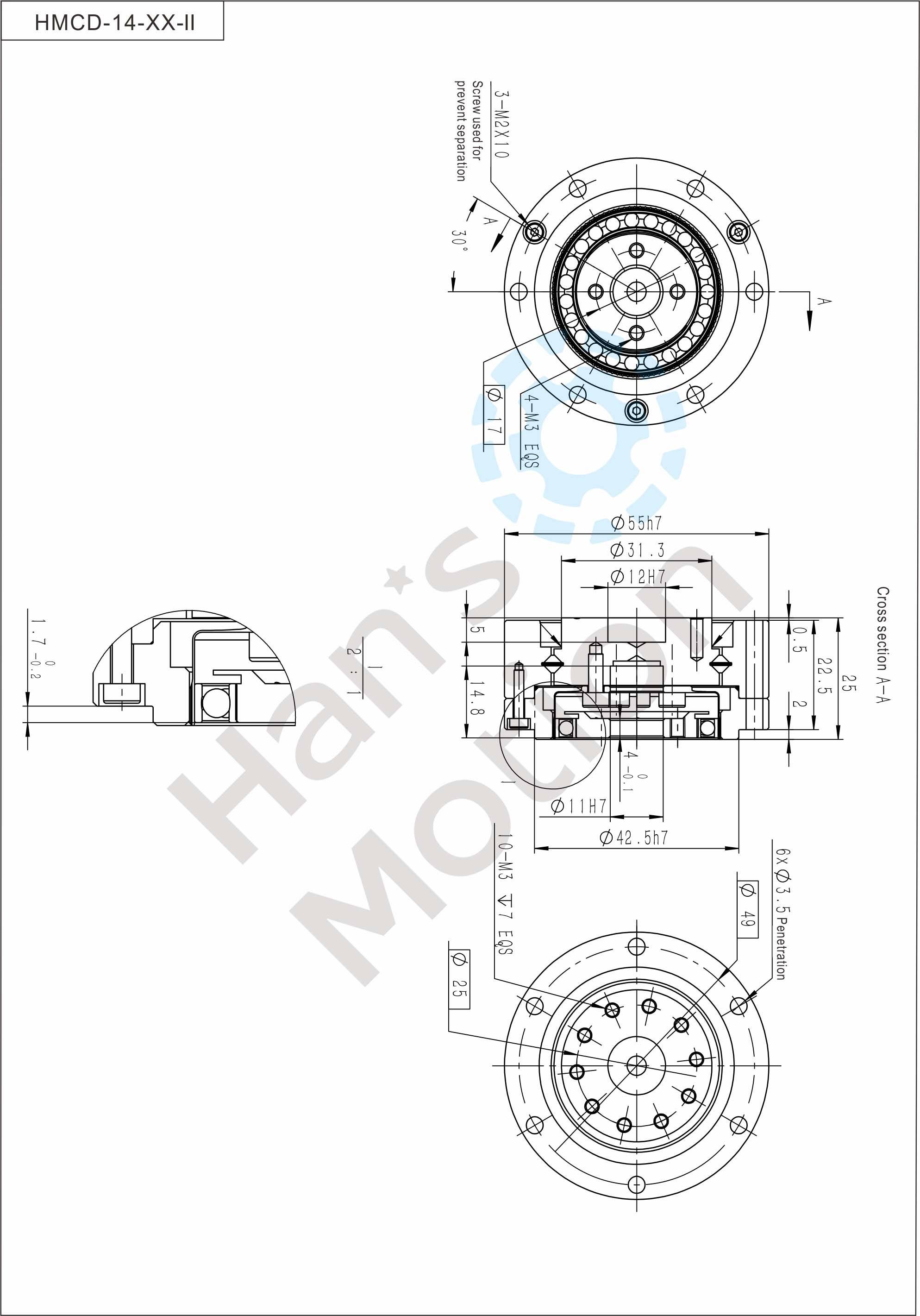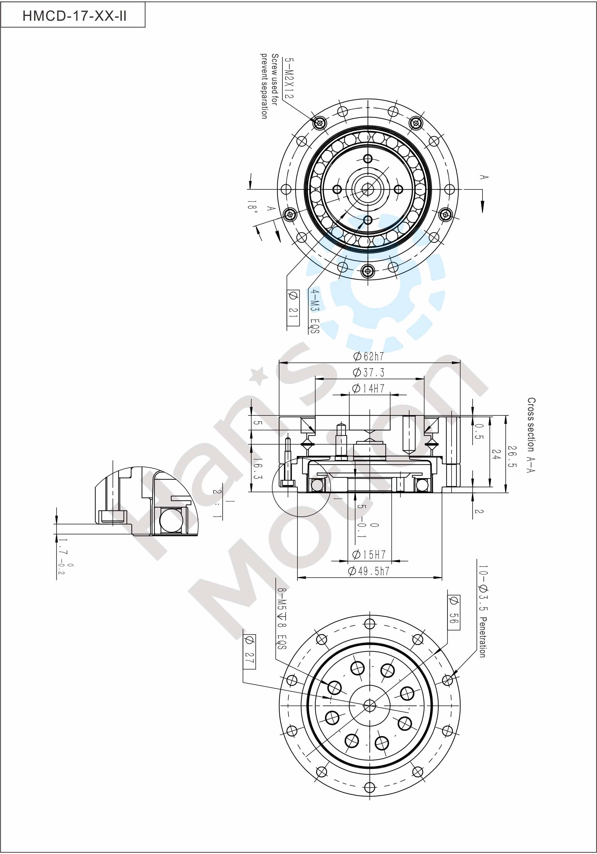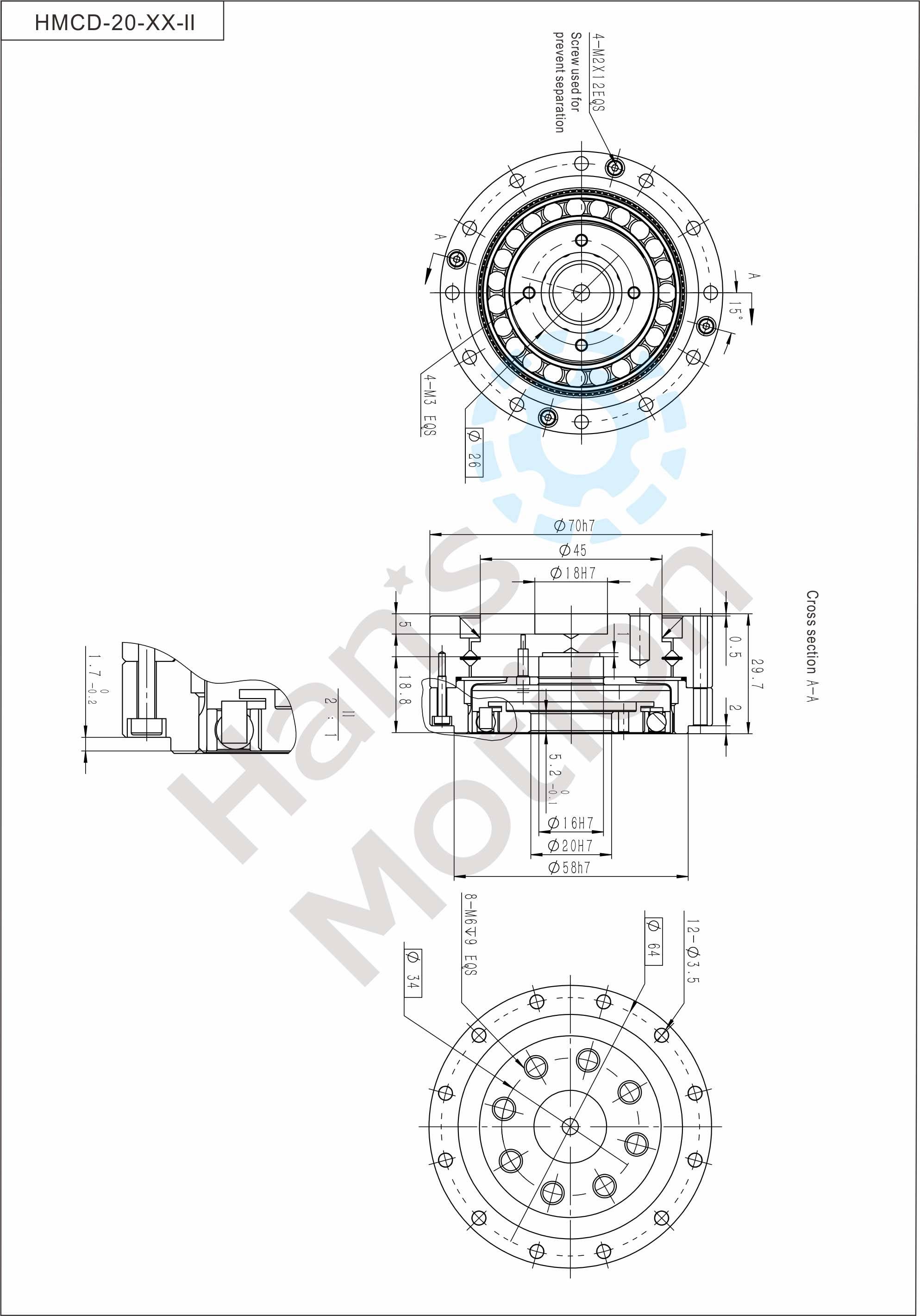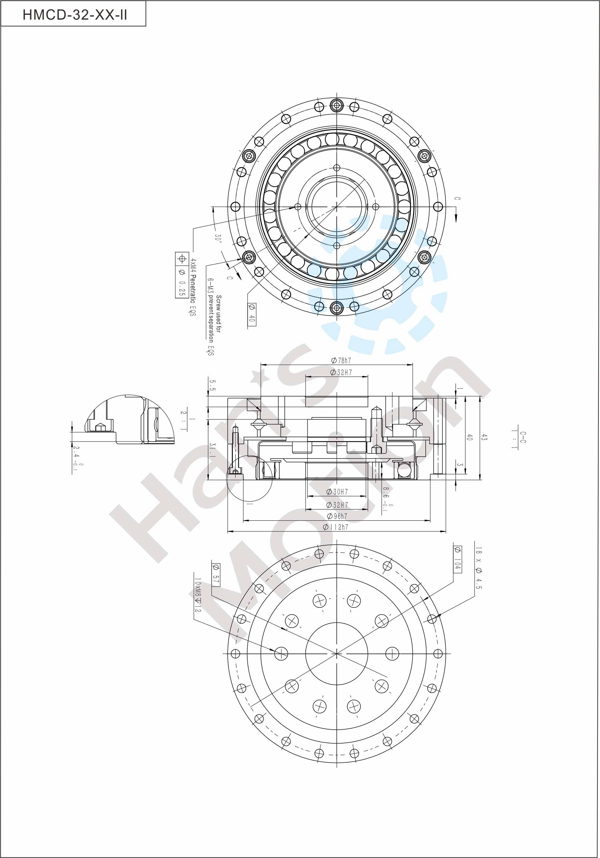 HMCD-II series, with a commitment to light weight and compact size of harmonic gear transmission, not only inherits the advantages of traditional products, but also realizes bold shape design based on the market demands. The overall machine adopts super-flat structure that is light and compact, so it is very suitable to be used as robot end joint and client reducer.